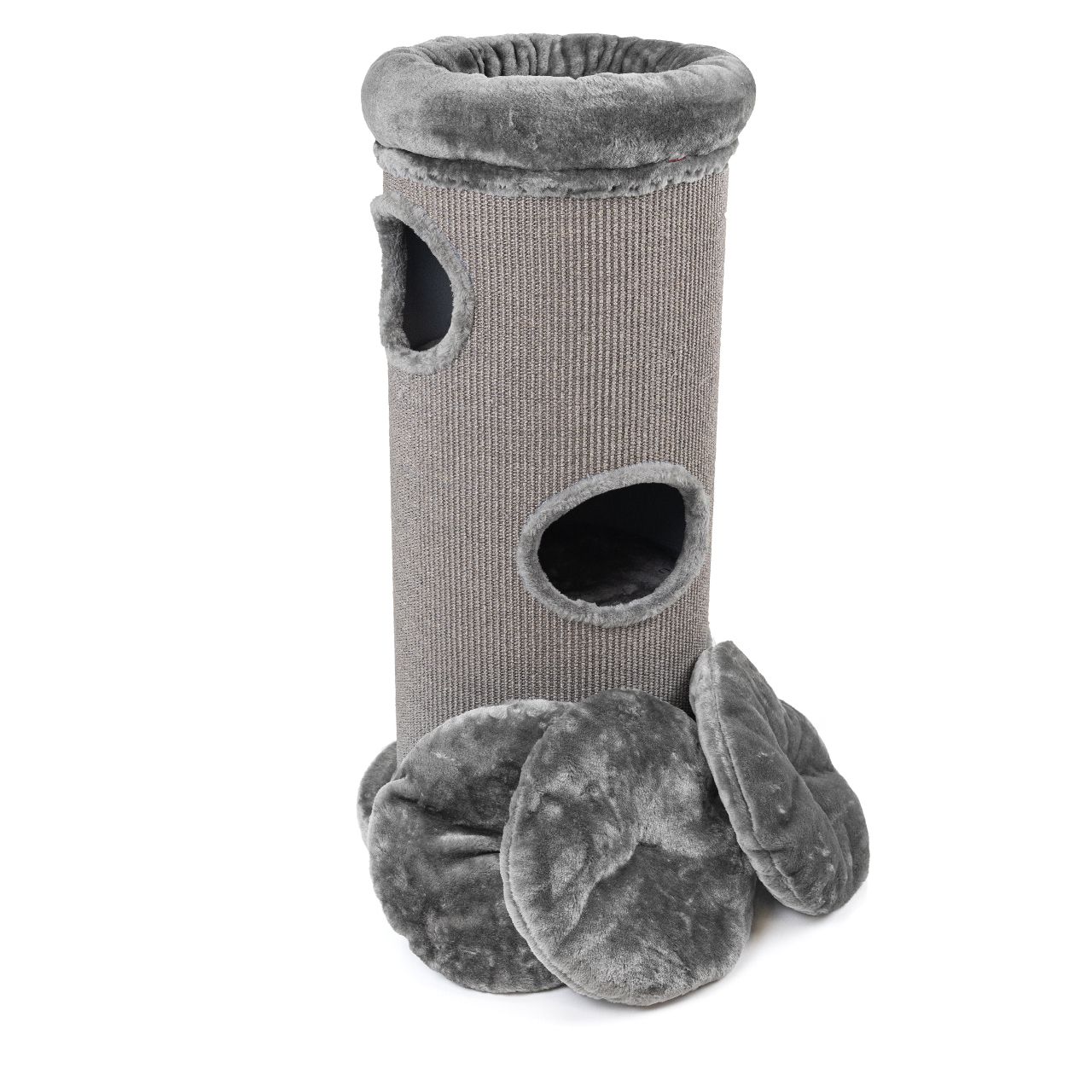 The Olivia Anthracite Scratching Tower (40 × 40 × 100 cm) from the Canadian Cat Company combines practicality and elegance. Standing 100 cm tall on a 40 cm square base, it features three cozy compartments perfect for your cat to retreat to, climb on, or observe. Each hideaway is padded for comfort, and the multiple openings encourage exploration and play. The exterior, covered in sturdy sisal, satisfies cats’ natural urge to scratch while preserving their claws. The sleek anthracite finish blends seamlessly into modern interiors, combining functionality with a feline aesthetic.